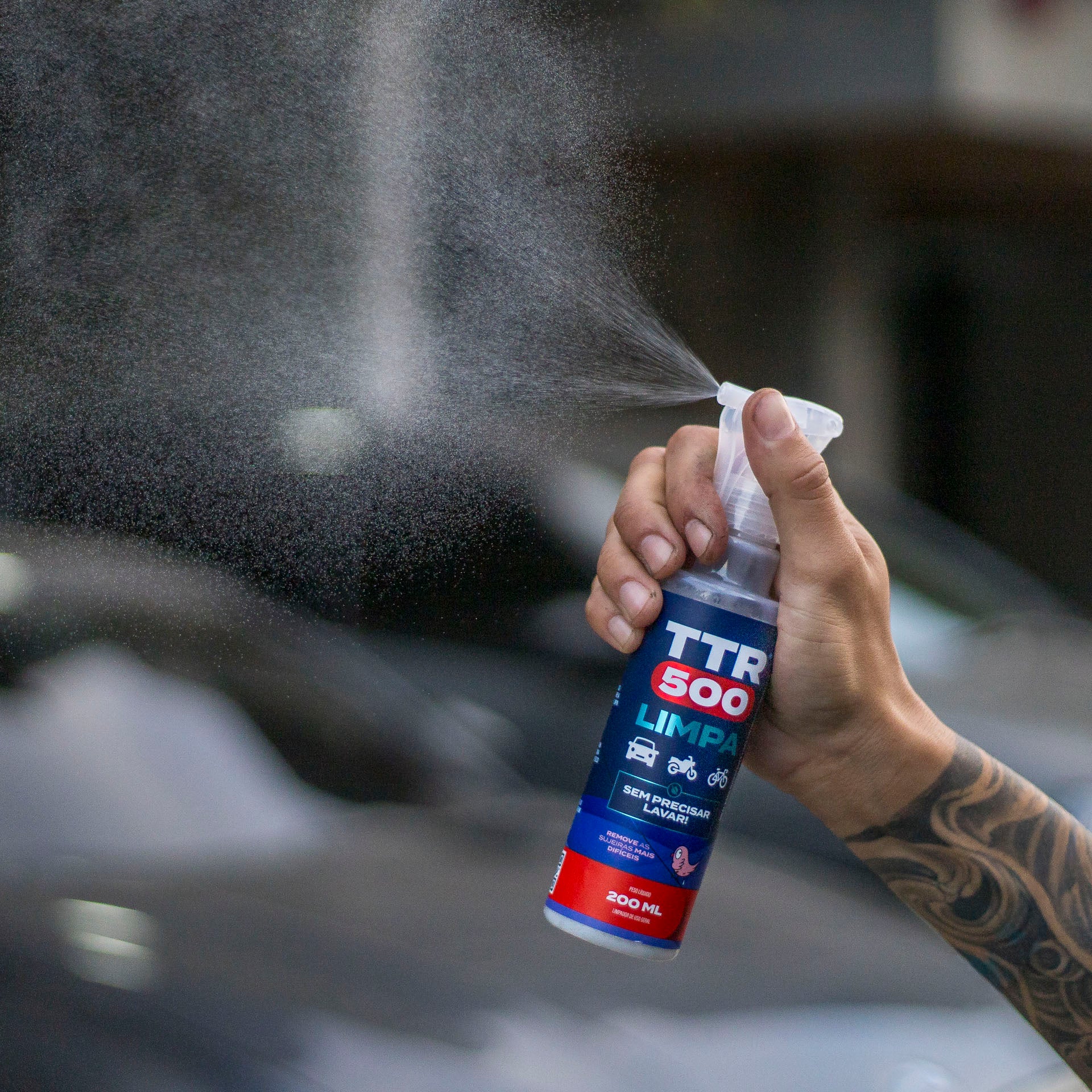 Não é a proposta do TTR500 fazer limpeza pesada. Apesar de remover vários tipos de sujeira,  o objetivo do produto é trazer praticidade  para uma limpeza rápida e cotidiana. Manter seu veículo por mais tempo limpo entre as lavagens.