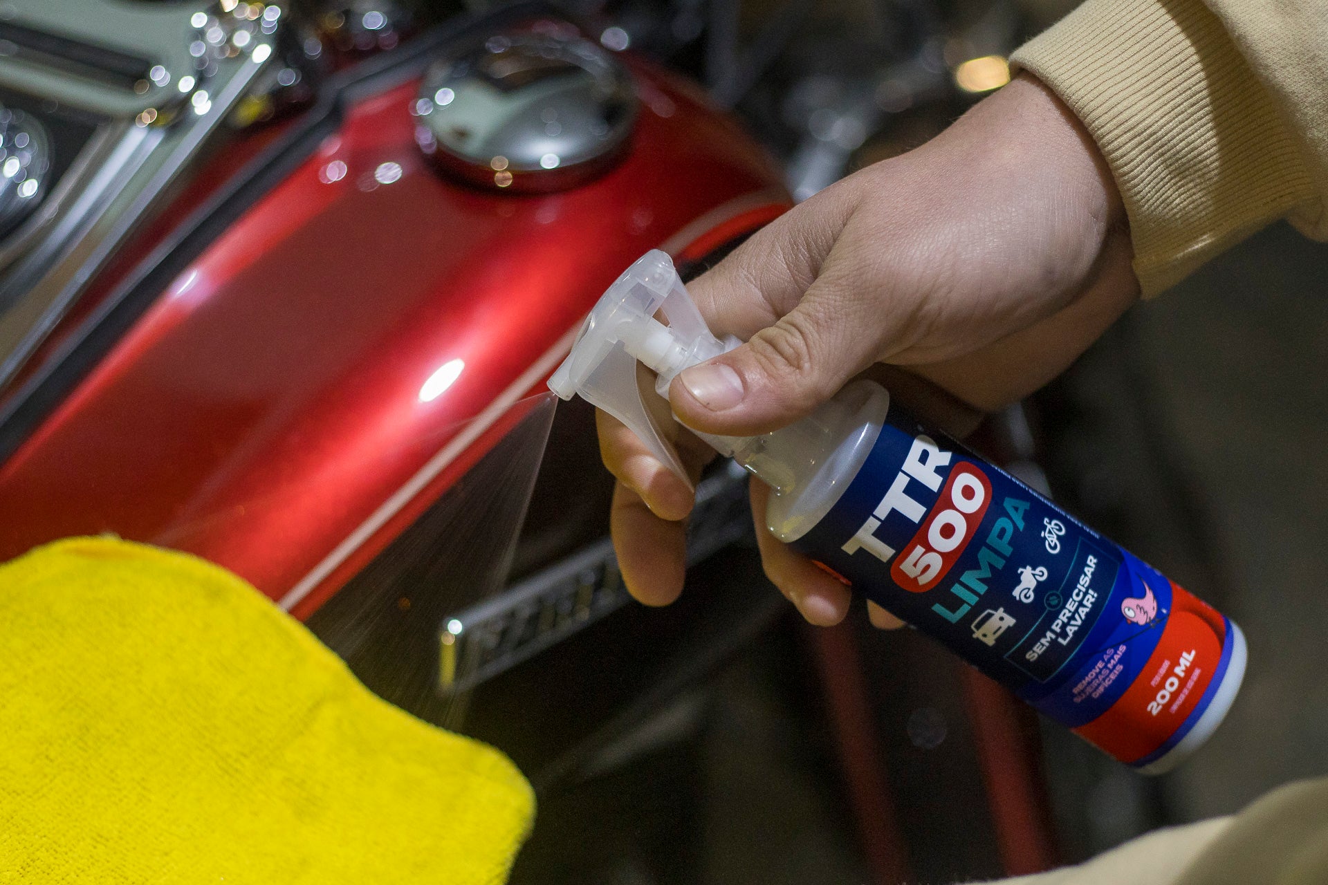 A proposta do TTR500 é para ser usado  em superfícies pintadas ou cromadas, na  parte estética do veículo. Não é um  desengraxante feito para mecanismos.  Contudo, já se mostrou uma ótima opção  para limpeza do cofre do motor, onde a  água é indesejada. Também na limpeza  estética de motores de moto. Adoramos saber o que mais o TTR500 foi capaz de limpar através de depoimentos de nossos clientes.